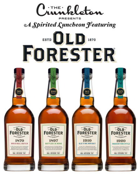 Join us for A Spirited Luncheon with Old Forester. Start your afternoon off with an Old Forester Rye Scofflaw welcome cocktail, followed by a guided tasting of the Old Forester Whiskey Row Series led by Melissa Rift (Master Taster for Old Forester). Finally, enjoy a wonderful lunch prepared by Chefs Karl Christensen & Tom Willoughby, paired with a special cocktail crafted by Tyler Dacaret.